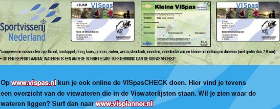 De grote VISpas is alleen in combinatie met een visvergunning van H.S.V. De Baars Ingen,